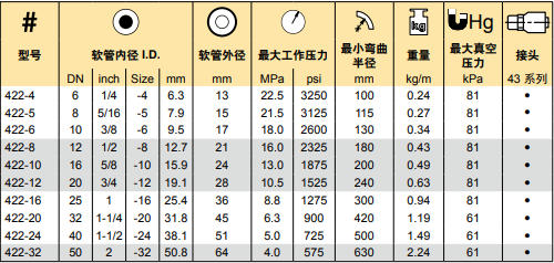 適用介質(zhì):石油基液壓油,水乙二醇,潤(rùn)滑油,空氣和水。用于1.7MPa以上的空氣時(shí),軟管需針刺。