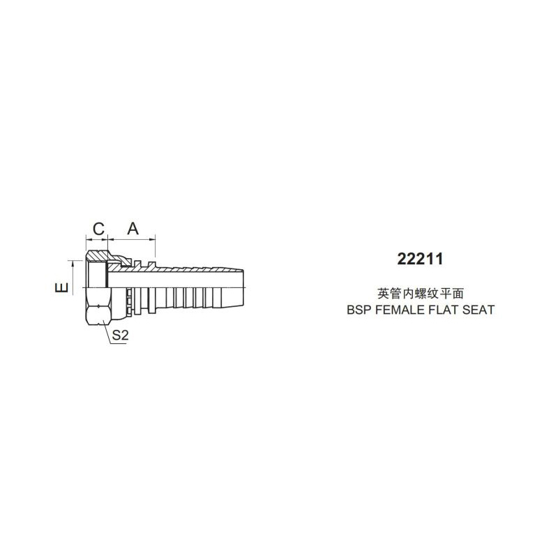 永華標(biāo)準(zhǔn)扣壓式接頭 22211英管內(nèi)螺紋 平面密封面BSP FEMALE FLAT SEAT永華集團創(chuàng)辦于1864年,主導(dǎo)產(chǎn)品包括軟管總成、軟管接頭、過渡接頭。