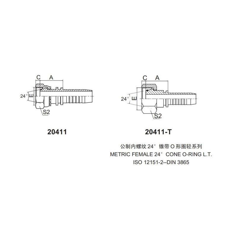 永華標準扣壓式接頭 20411和20411-T 公制內(nèi)螺紋 24 錐帶O形圈輕系列METRIC FEMALE 24 CONE O-RING L.T.ISO 12
