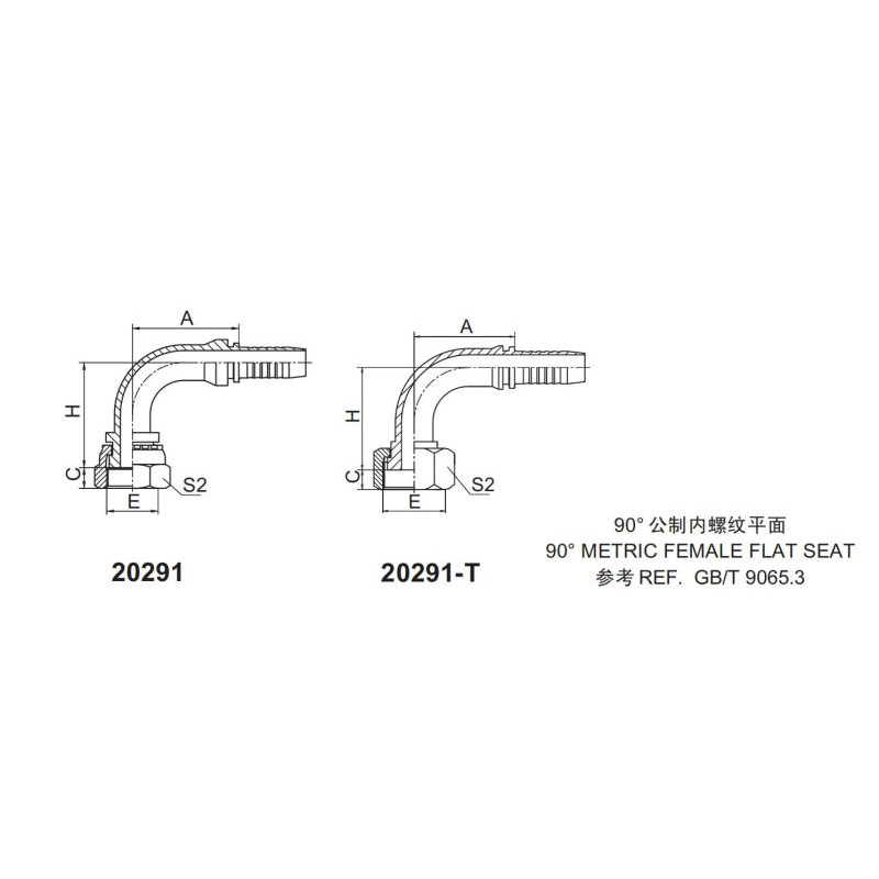 永華標準扣壓式接頭 20291和20291-T 90公制內螺紋 平面90 METRIC FEMALE FLAT SEATREF.GB/T 9065.3永華集團創(chuàng)